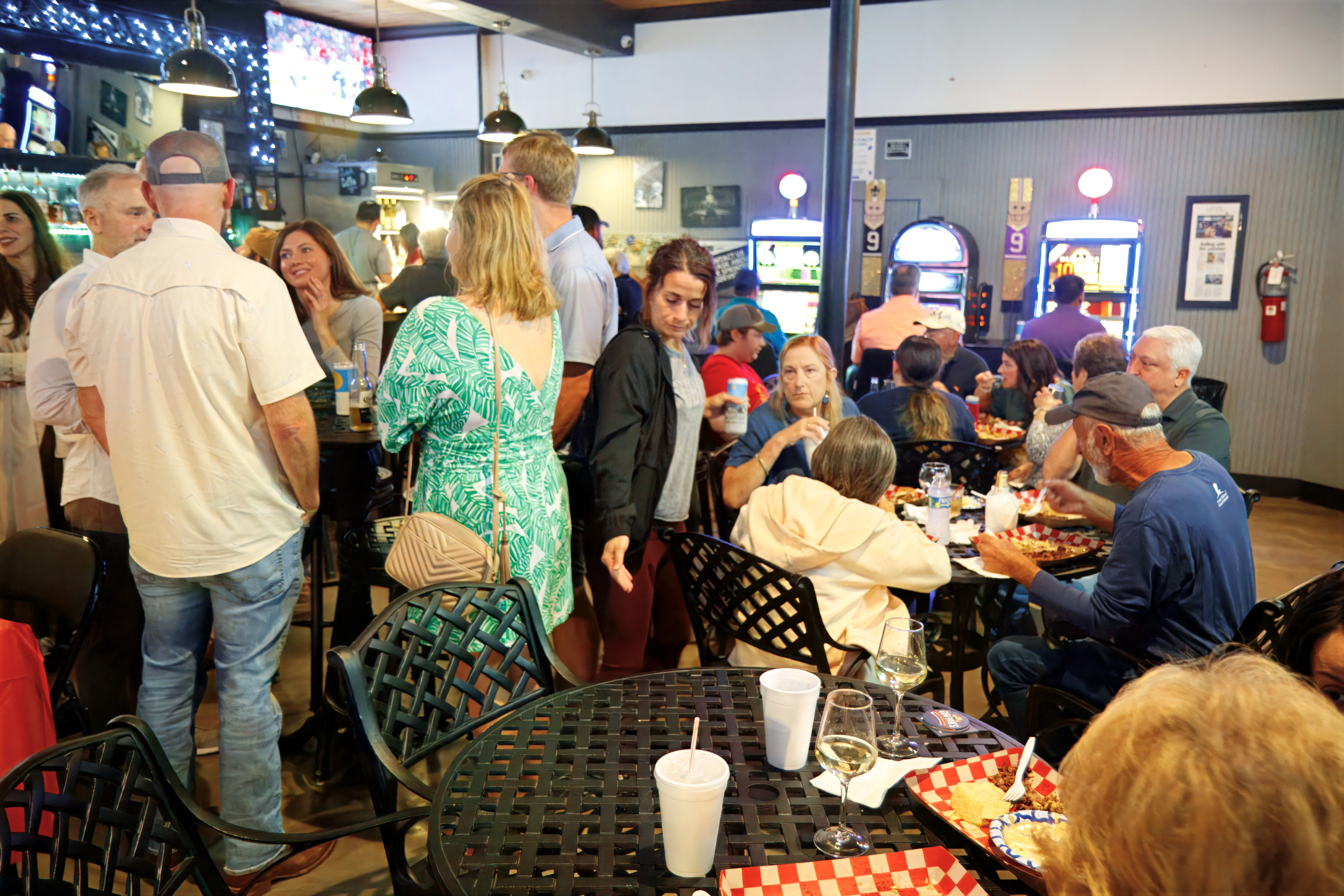 The viewing party itself painted a portrait of Port Allen's interconnected business community. Brian's Furniture earned screen time when their hot sauce was featured in the kitchen during filming. Regular customers called out familiar faces on screen. Everyone temporarily united in hometown pride.